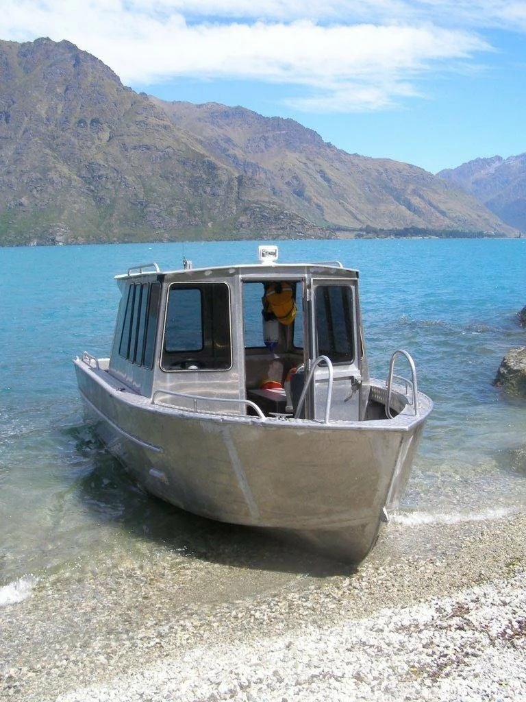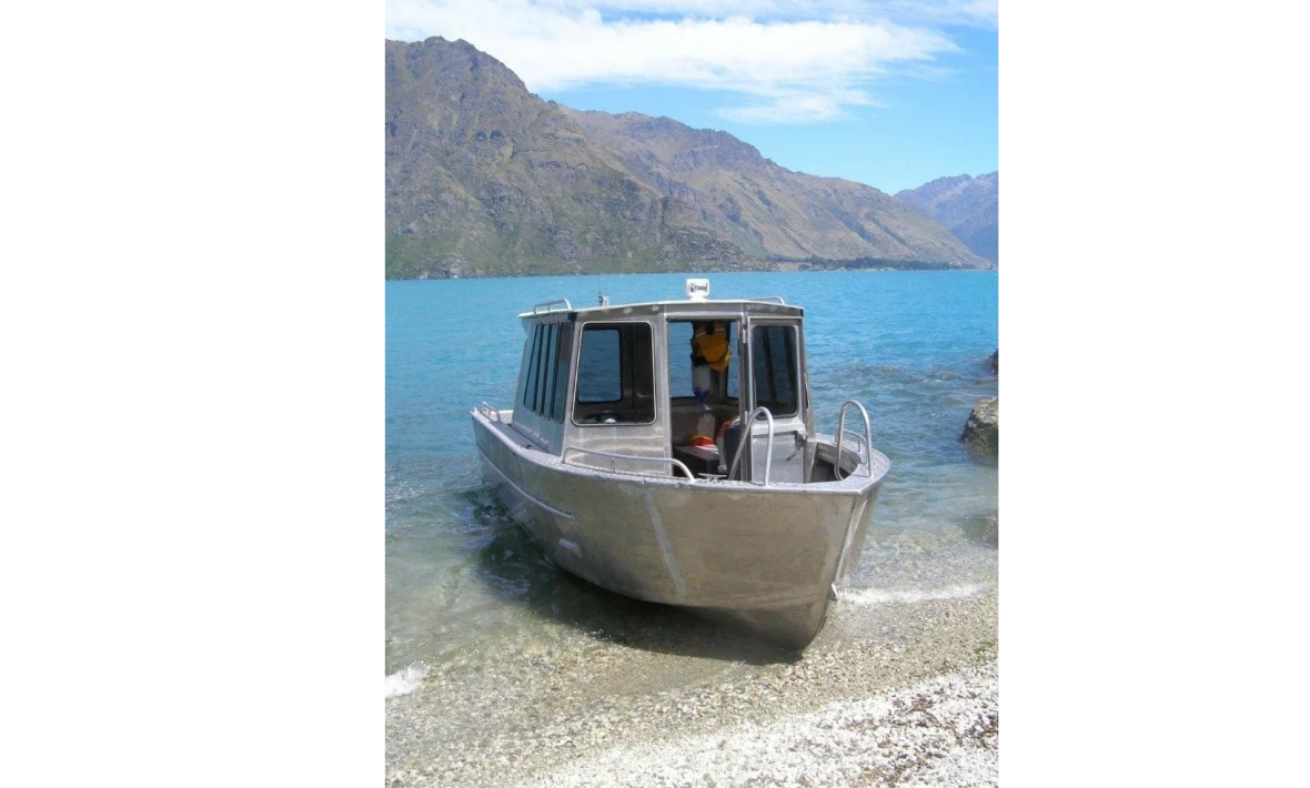 The boat, a 7m-alloy hardtop is primarily used by Halfway Bay Station for transporting goods and staff around the expansive property on Lake Wakatipu, which has no road access.