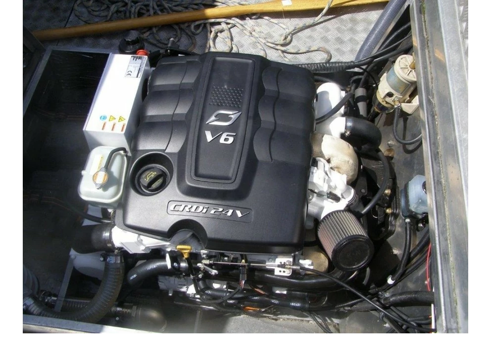 The new engine, the Hyundai SeasAll S250, is a 3.0L V6 Common Rail diesel and produces 250hp and 490nm of torque at 3800rpm and delivers the power through a MerCruiser Bravo II sternleg.